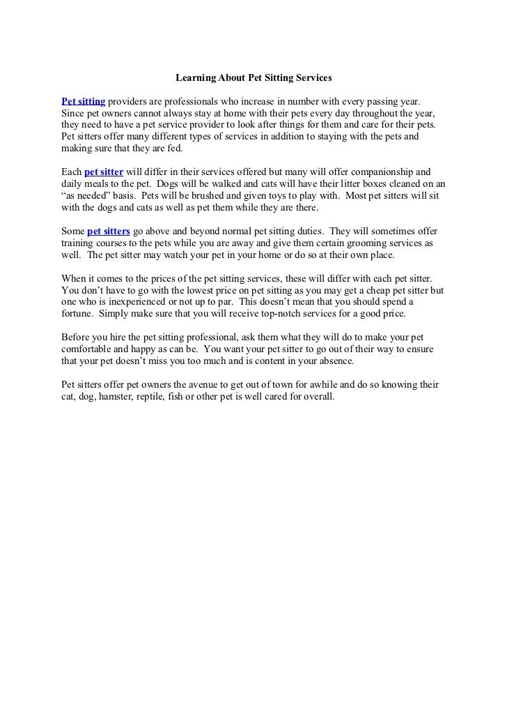 Of course, there are always variables that affect that price such as if you need a pet taxi to. We call this our kitty concierge service! Benefits for pet sitting for you and your pets: Pet sitting information sheet pdf pet sitter dog cat sitter take care of pets marketing. Pet sitters come to the pet owner's house and take care of the pet's basic daily needs.